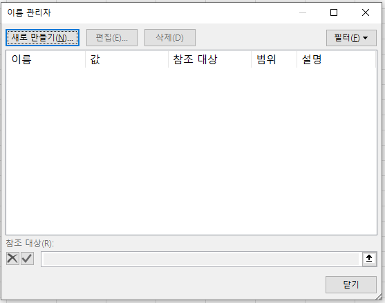 이름, 참조대상, 설명 등을 기입하여 이름을 정의할 수 있다.