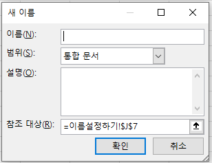 이름, 참조대상, 설명 등을 기입하여 이름을 정의할 수 있다.