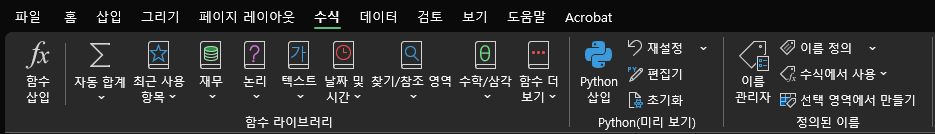 여기서 이름 정의를 할 수 있고 정의된 이름이나 범위를 수정할 수도 있고 이름 정의를 해놓으면 수식에서도 사용할 수 있다.